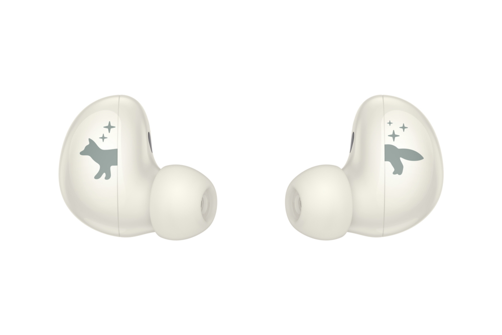 Asimismo, el auricular derecho presenta la cabeza del zorro. mientras que el izquierdo muestra su cola, para representar un viaje ininterrumpido a través de Samsung Galaxy.
